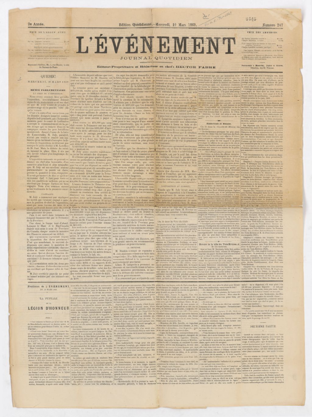 - Nomination de Henri-Gustave Joly comme chef de l'opposition