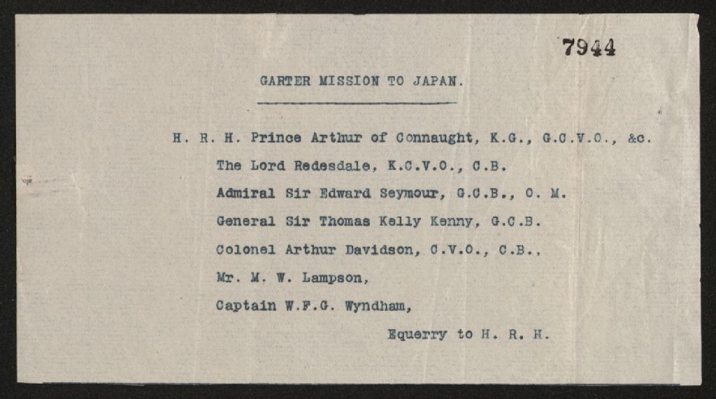 Note sur la suite du Prince Arthur de Connaught [Misson Carter au Japon]