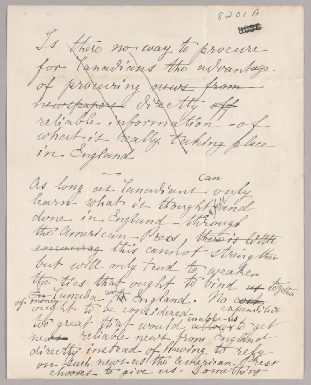 - Brouillon de lettre de Henri-Gustave Joly à Sandford Fleming