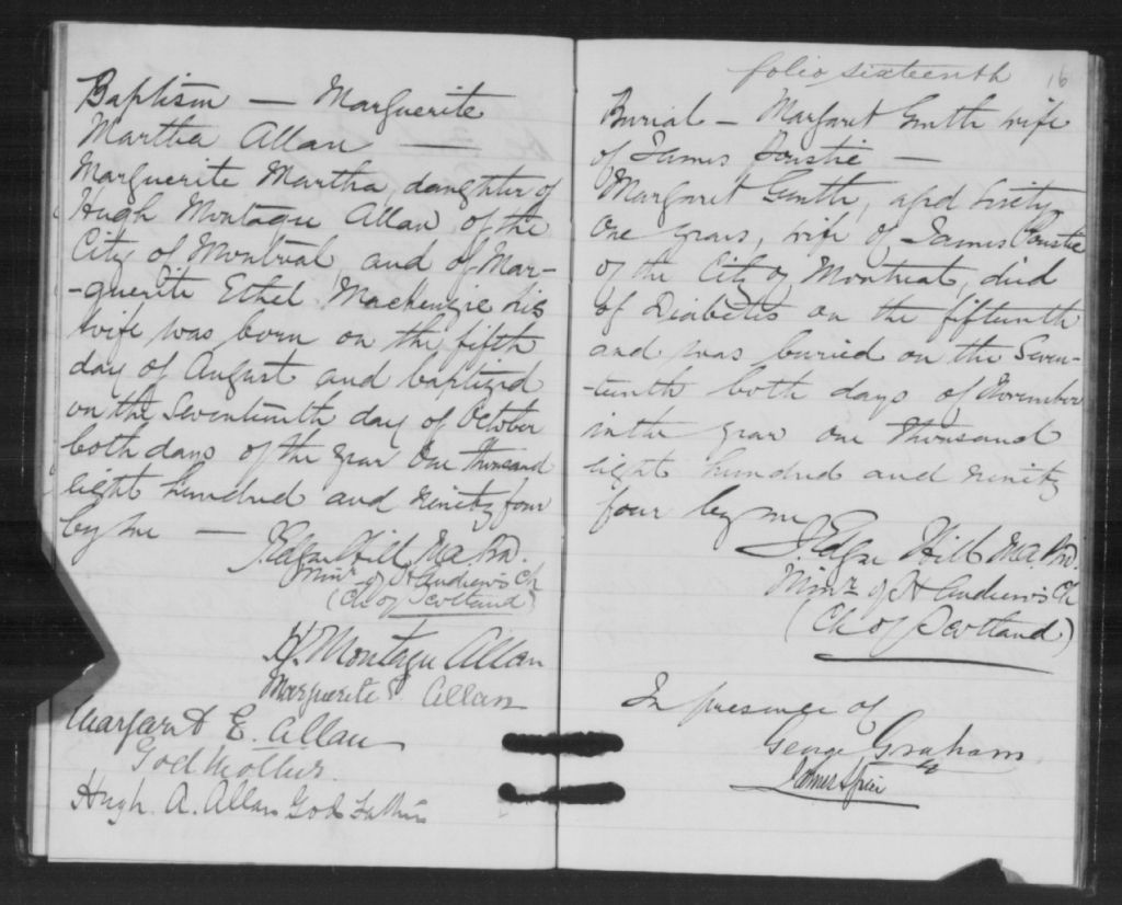 St. Andrew's Presbyterian Church of Montreal, 1815-1918, Archives nationales à Montréal, Fonds Cour supérieure. District judiciaire de Montréal. État civil, (06M,CE601,S125).