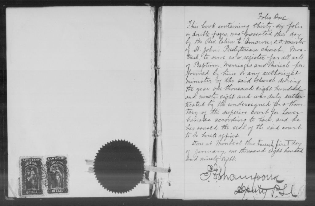 St. John's Presbyterian Church, 1841-1870, 1879-1899, Archives nationales à Montréal, Fonds Cour supérieure. District judiciaire de Montréal. État civil, (06M,CE601,S127).