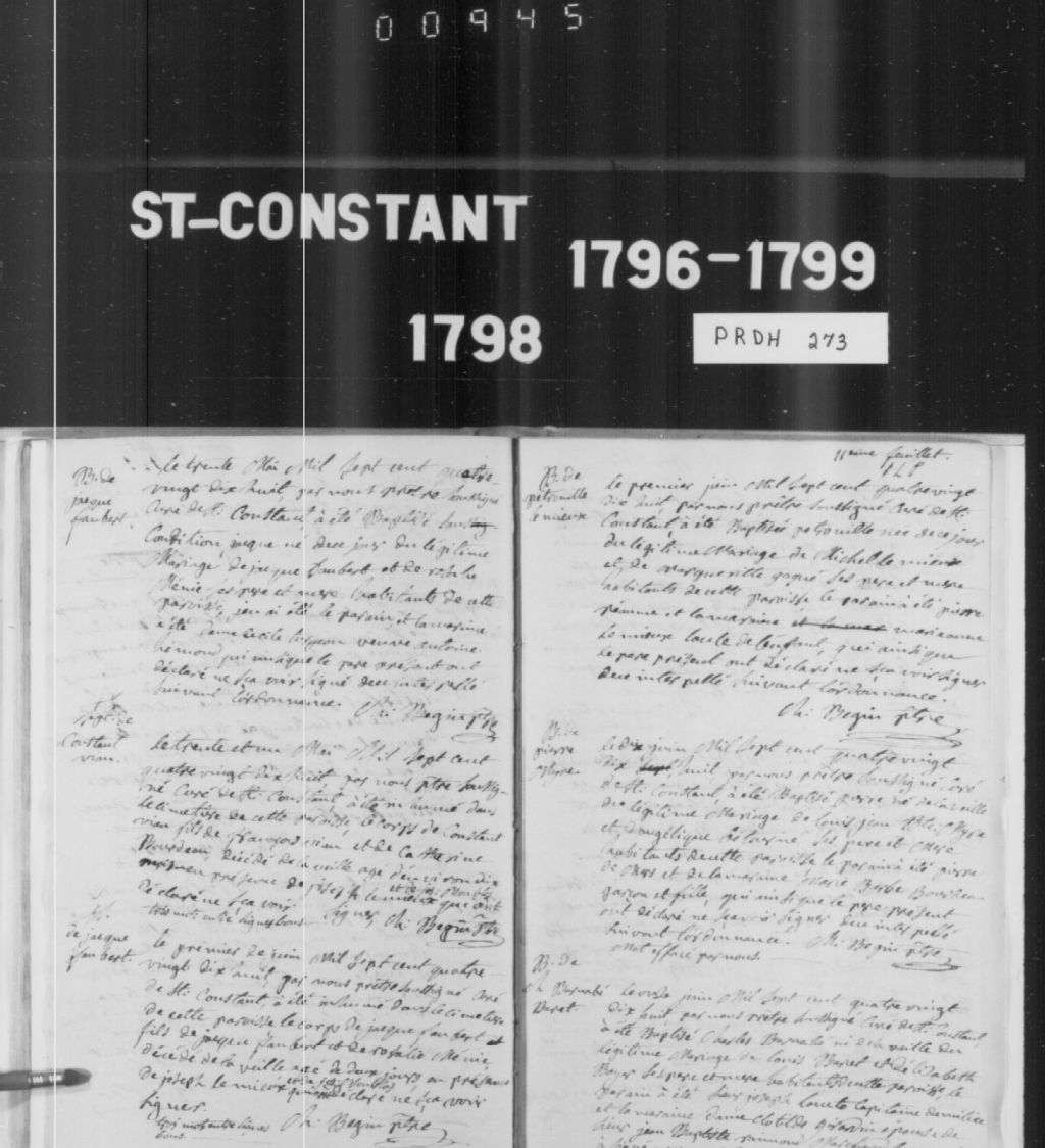 Saint-Constant, 1752-1922, Archives nationales à Montréal, Fonds Cour supérieure. District judiciaire de Montréal. État civil, (06M,CE601,S18).