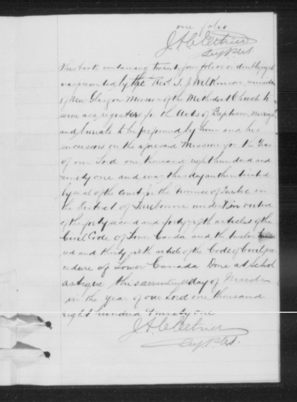 New Glasgow Methodist Church, 1862-1895, Archives nationales à Montréal, Fonds Cour supérieure. District judiciaire de Terrebonne. État civil, (06M,CE606,S45).