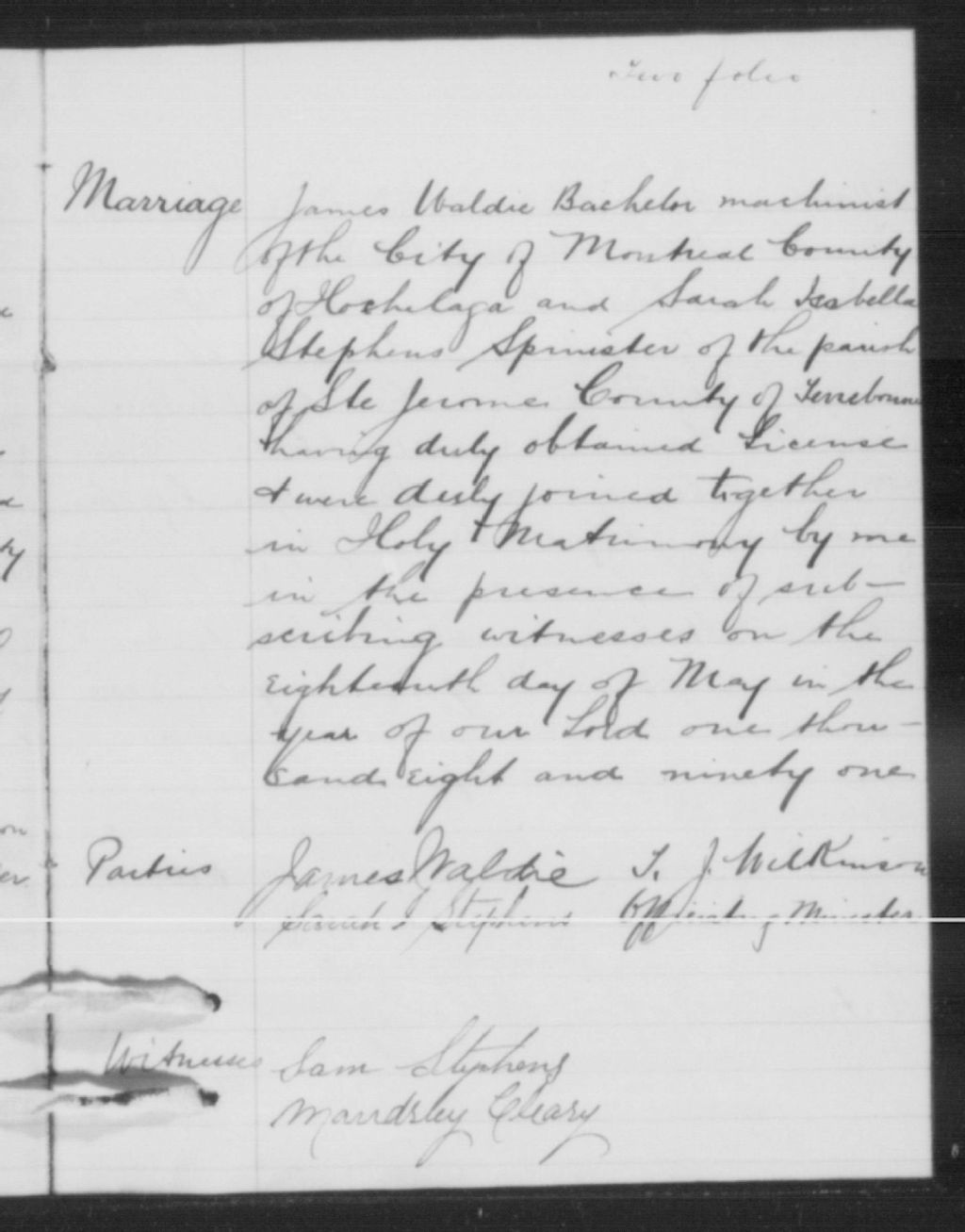 New Glasgow Methodist Church, 1862-1895, Archives nationales à Montréal, Fonds Cour supérieure. District judiciaire de Terrebonne. État civil, (06M,CE606,S45).