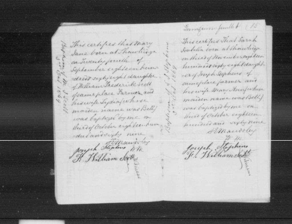 Shawbridge Methodist Church, 1865-1921, Archives nationales à Montréal, Fonds Cour supérieure. District judiciaire de Terrebonne. État civil, (06M,CE606,S49).