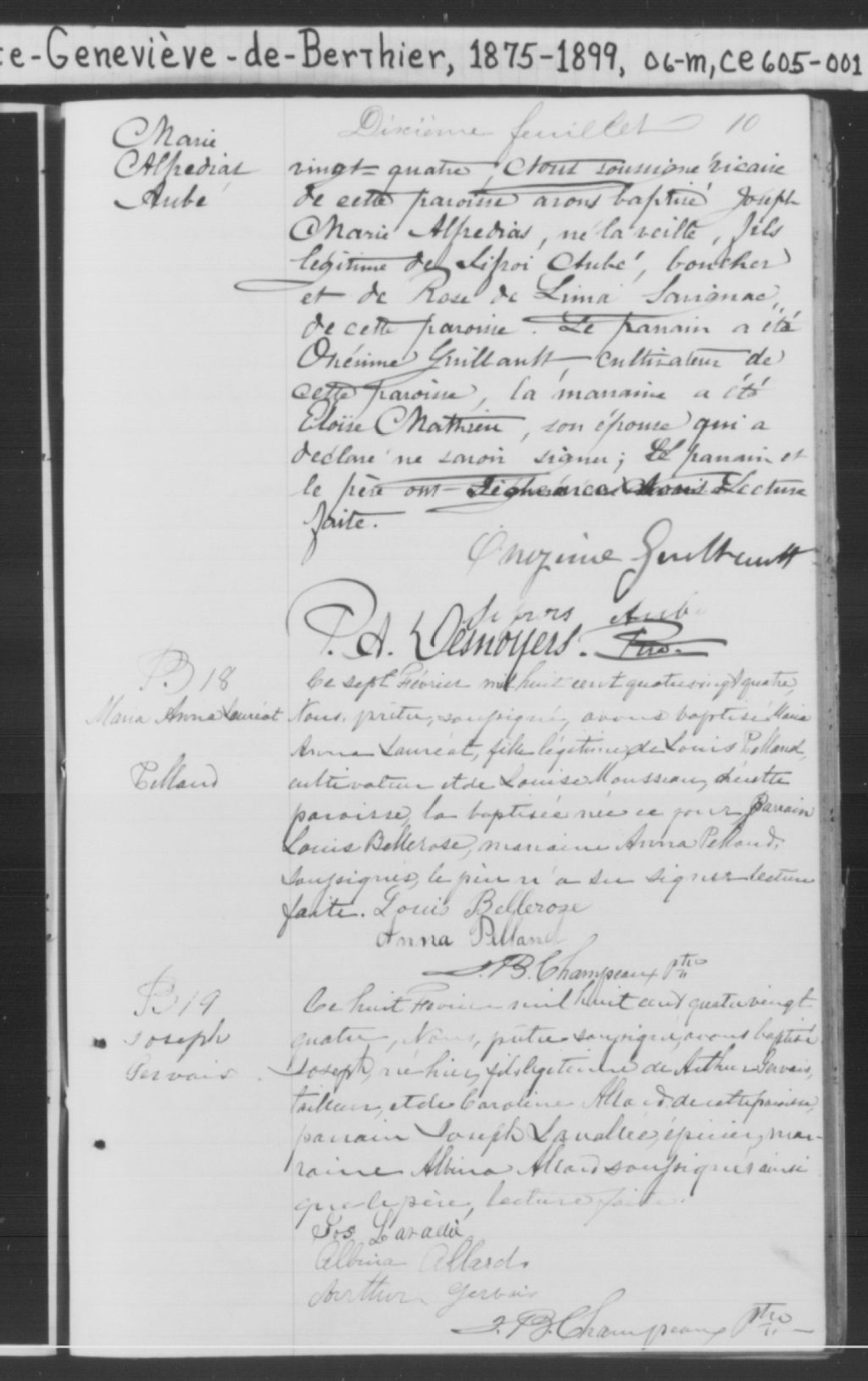 Sainte-Geneviève-de-Berthier, 1722-1920, Archives nationales à Montréal, Fonds Cour supérieure. District judiciaire de Joliette. État civil, (06M,CE605,S1).