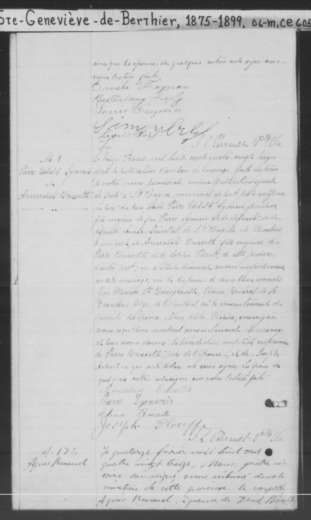 Sainte-Geneviève-de-Berthier, 1722-1920, Archives nationales à Montréal, Fonds Cour supérieure. District judiciaire de Joliette. État civil, (06M,CE605,S1).