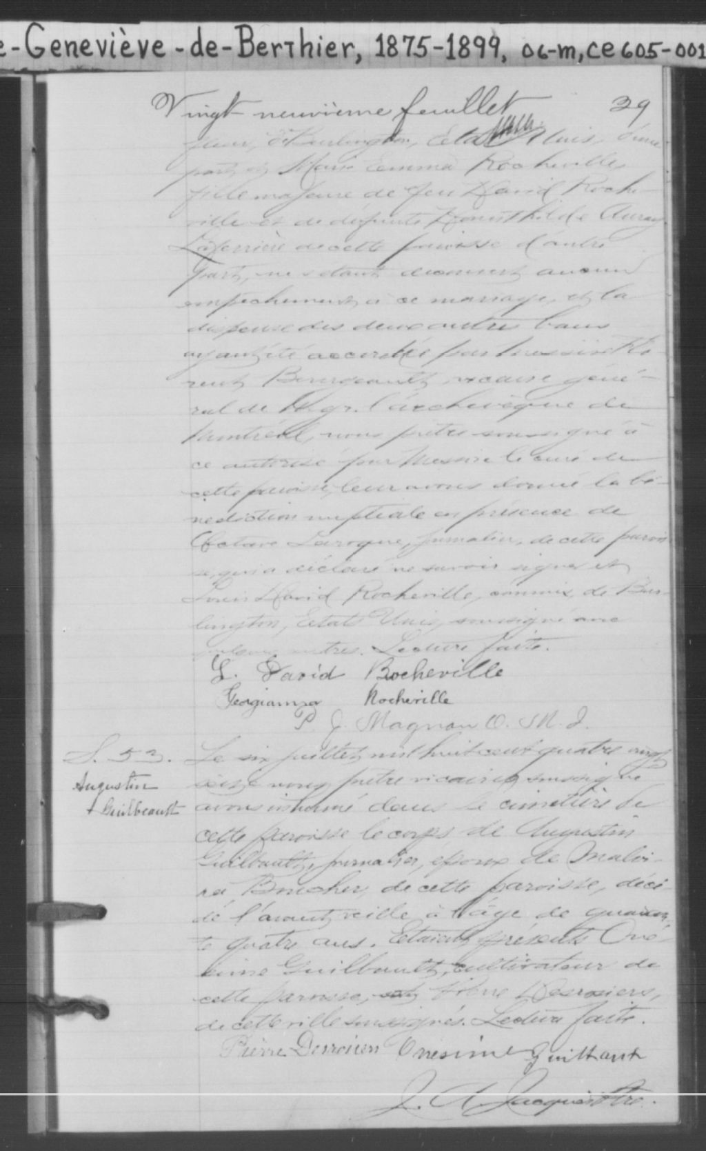 Sainte-Geneviève-de-Berthier, 1722-1920, Archives nationales à Montréal, Fonds Cour supérieure. District judiciaire de Joliette. État civil, (06M,CE605,S1).