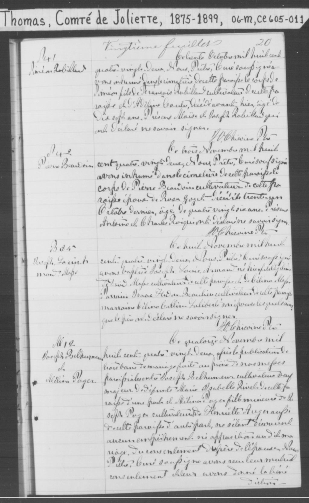 Saint-Thomas, 1841-1921, Archives nationales à Montréal, Fonds Cour supérieure. District judiciaire de Joliette. État civil, (06M,CE605,S11).