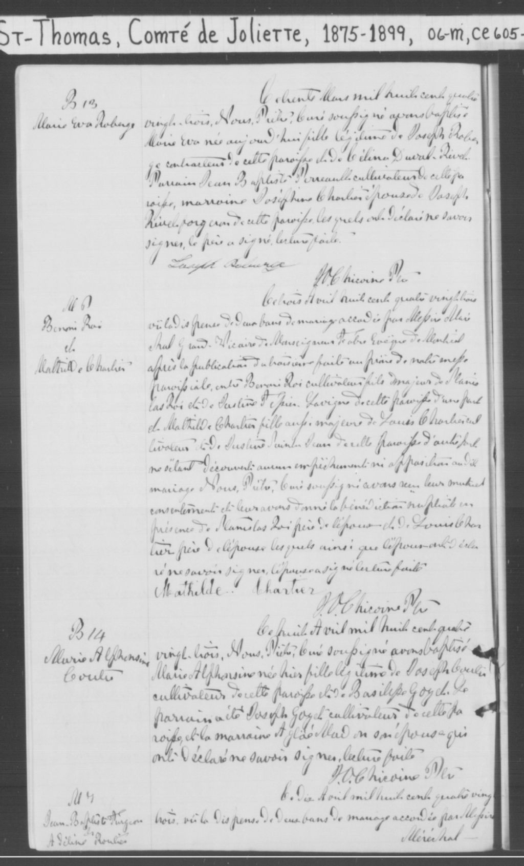 Saint-Thomas, 1841-1921, Archives nationales à Montréal, Fonds Cour supérieure. District judiciaire de Joliette. État civil, (06M,CE605,S11).