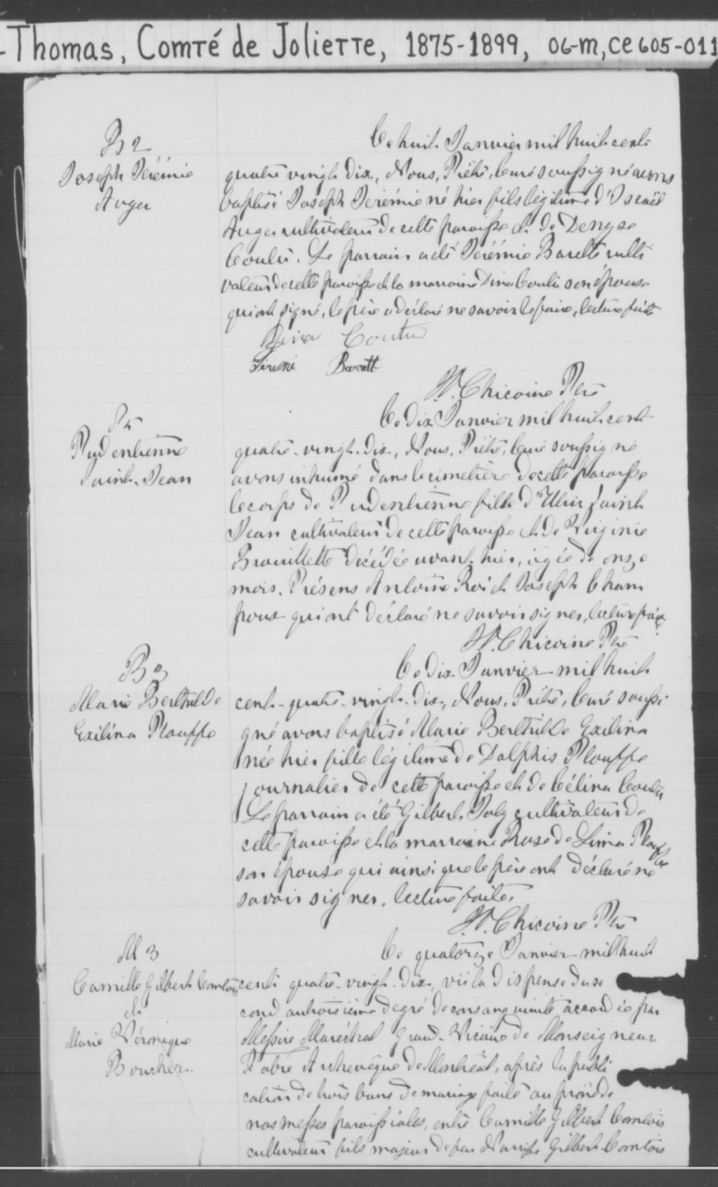 Saint-Thomas, 1841-1921, Archives nationales à Montréal, Fonds Cour supérieure. District judiciaire de Joliette. État civil, (06M,CE605,S11).