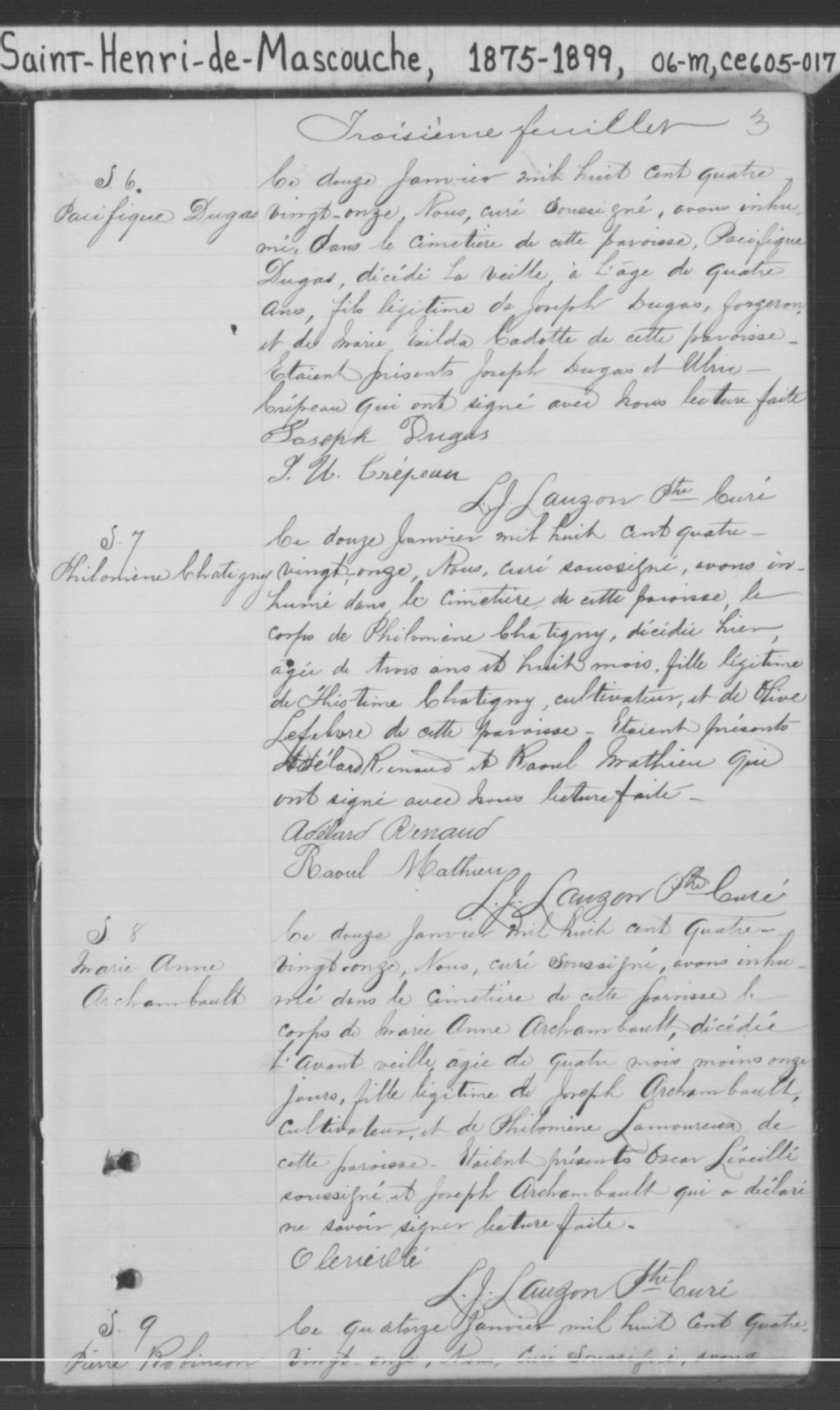 Saint-Henri-de-Mascouche, 1762-1921, Archives nationales à Montréal, Fonds Cour supérieure. District judiciaire de Joliette. État civil, (06M,CE605,S17).