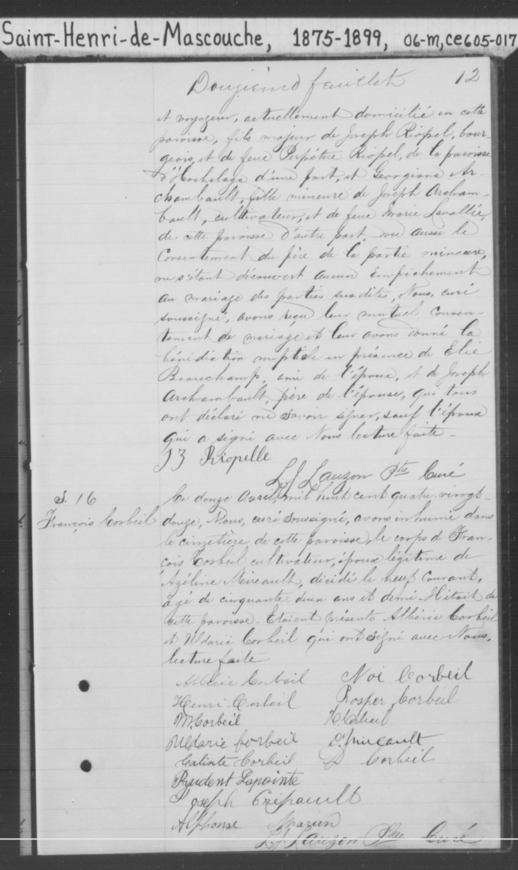 Saint-Henri-de-Mascouche, 1762-1921, Archives nationales à Montréal, Fonds Cour supérieure. District judiciaire de Joliette. État civil, (06M,CE605,S17).