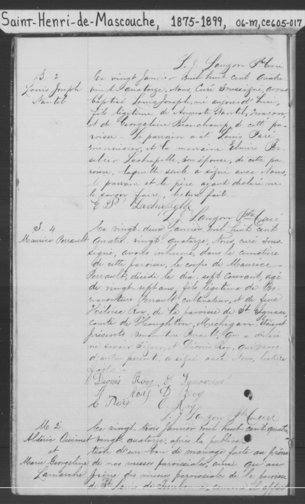 Saint-Henri-de-Mascouche, 1762-1921, Archives nationales à Montréal, Fonds Cour supérieure. District judiciaire de Joliette. État civil, (06M,CE605,S17).
