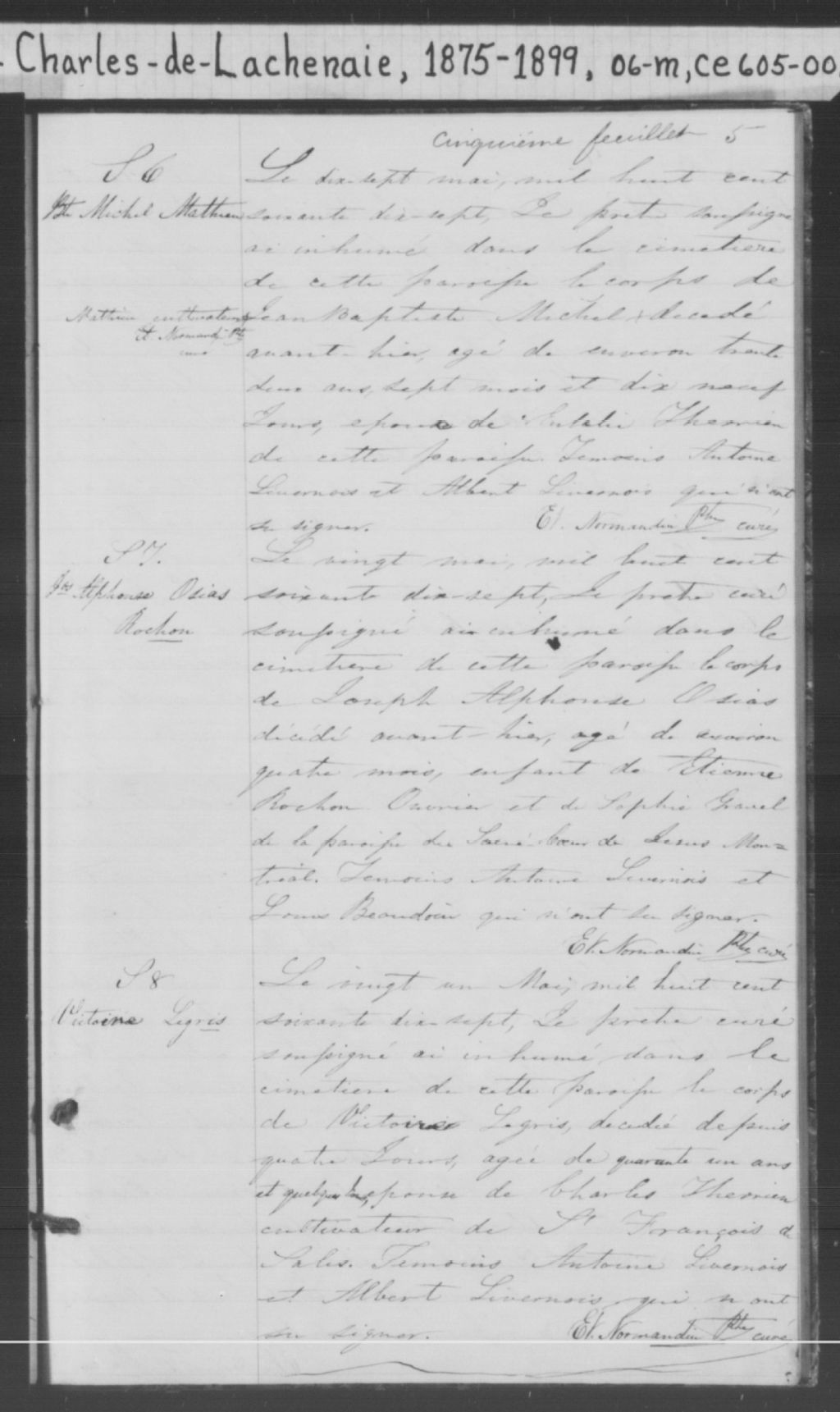 Saint-Charles-de-Lachenaie, 1685-1921, Archives nationales à Montréal, Fonds Cour supérieure. District judiciaire de Joliette. État civil, (06M,CE605,S2).
