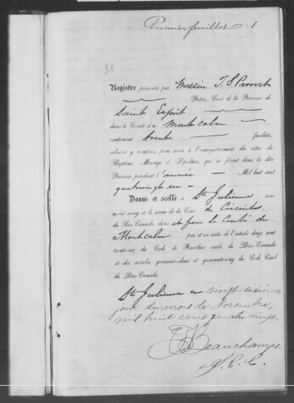 Saint-Esprit, 1808-1921, Archives nationales à Montréal, Fonds Cour supérieure. District judiciaire de Joliette. État civil, (06M,CE605,S22).