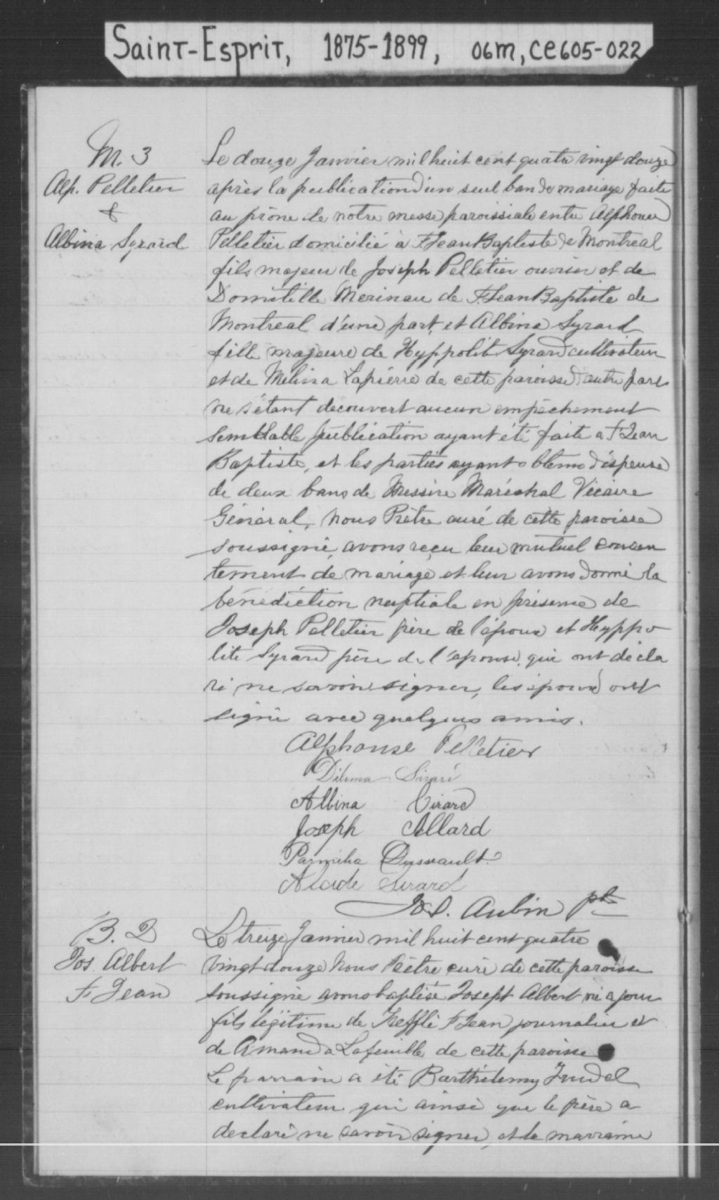 Saint-Esprit, 1808-1921, Archives nationales à Montréal, Fonds Cour supérieure. District judiciaire de Joliette. État civil, (06M,CE605,S22).