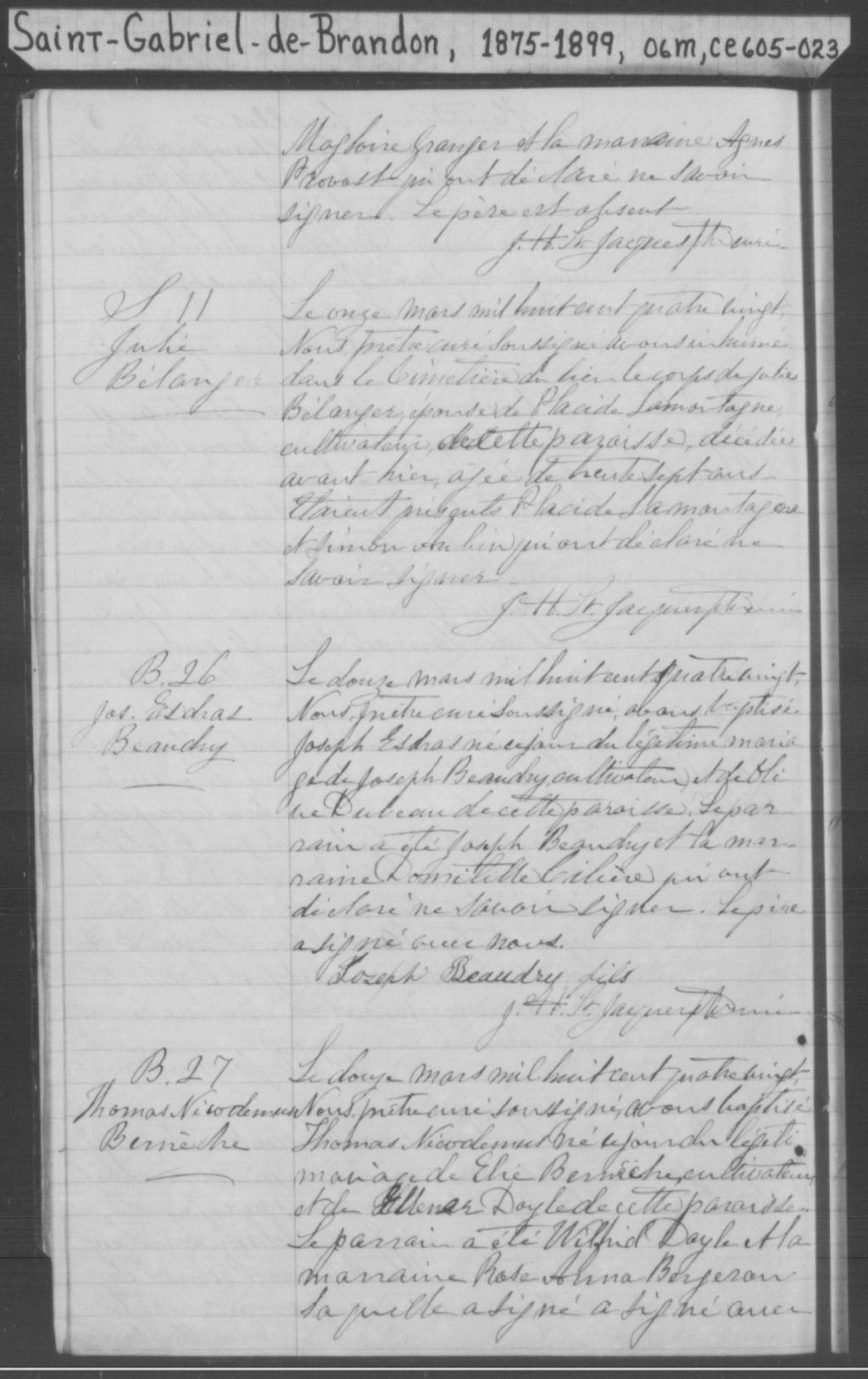 Saint-Gabriel-de-Brandon, 1839-1921, Archives nationales à Montréal, Fonds Cour supérieure. District judiciaire de Joliette. État civil, (06M,CE605,S23).