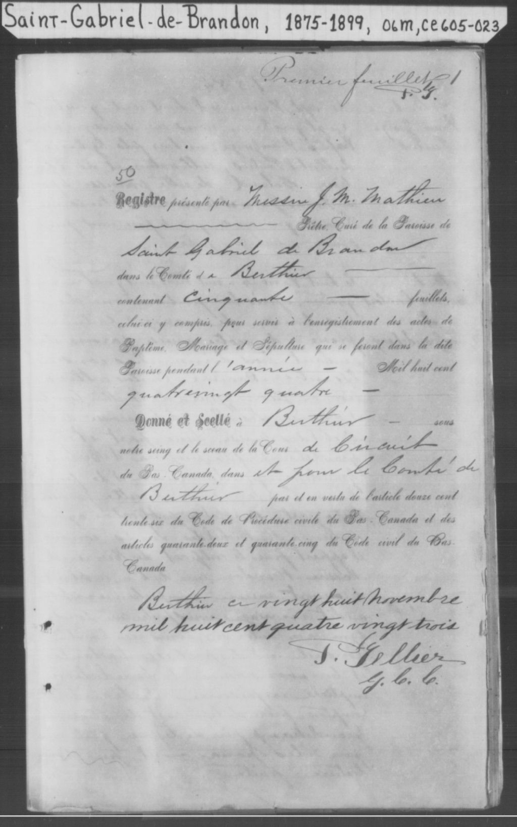 Saint-Gabriel-de-Brandon, 1839-1921, Archives nationales à Montréal, Fonds Cour supérieure. District judiciaire de Joliette. État civil, (06M,CE605,S23).