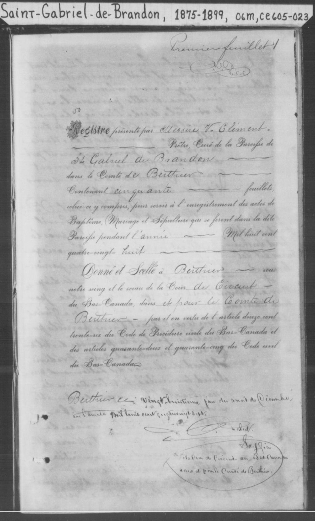 Saint-Gabriel-de-Brandon, 1839-1921, Archives nationales à Montréal, Fonds Cour supérieure. District judiciaire de Joliette. État civil, (06M,CE605,S23).