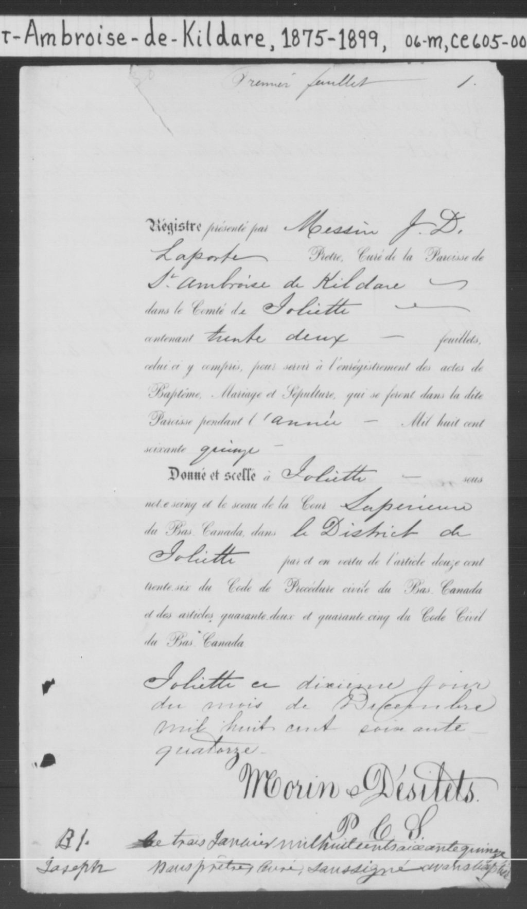 Saint-Ambroise-de-Kildare, 1832-1921, Archives nationales à Montréal, Fonds Cour supérieure. District judiciaire de Joliette. État civil, (06M,CE605,S3).