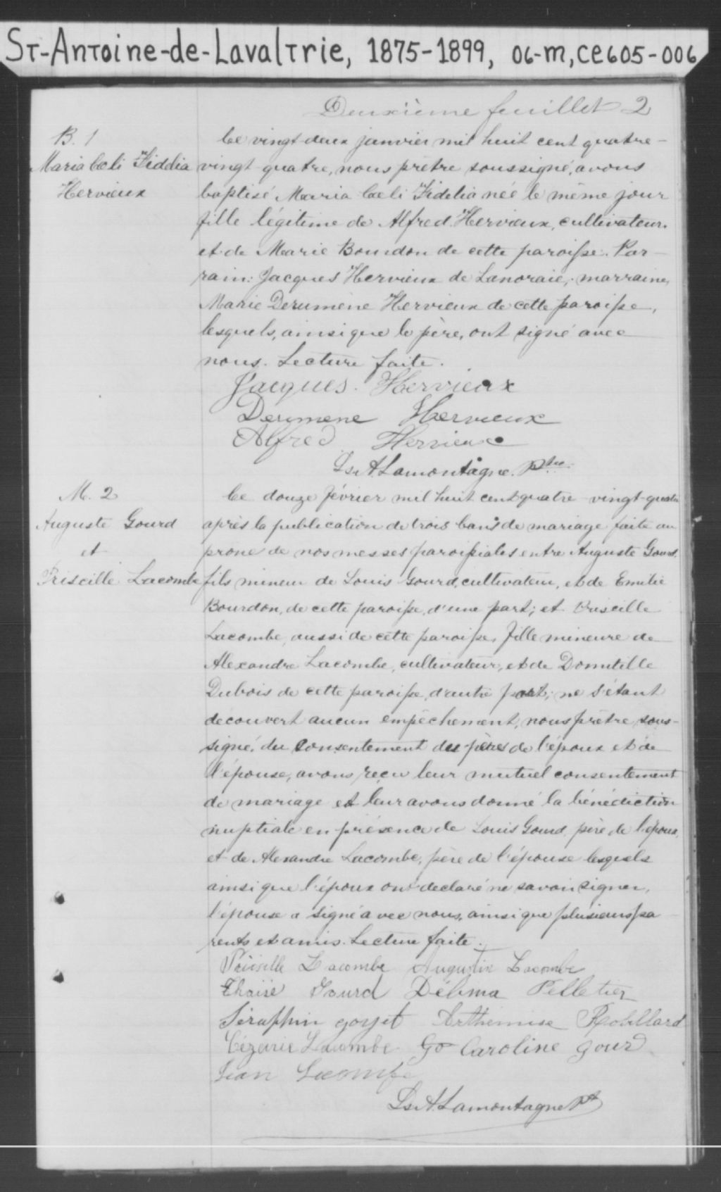 Saint-Antoine-de-Lavaltrie, 1749-1921, Archives nationales à Montréal, Fonds Cour supérieure. District judiciaire de Joliette. État civil, (06M,CE605,S6).