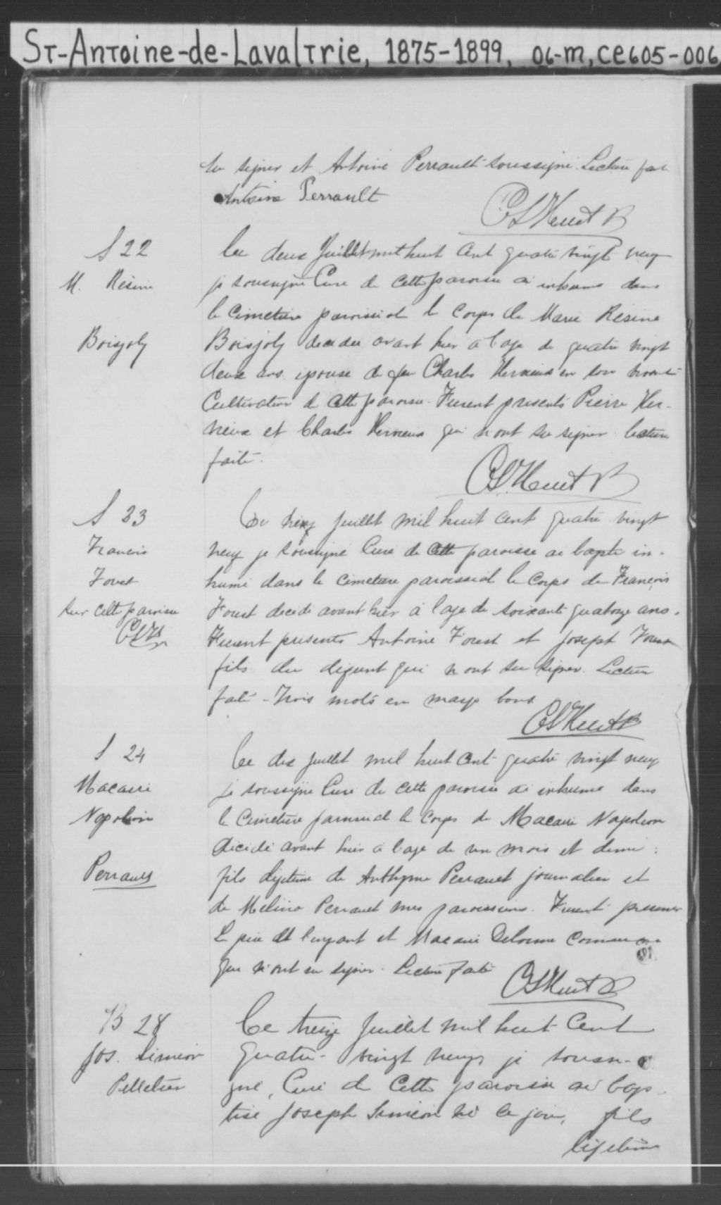 Saint-Antoine-de-Lavaltrie, 1749-1921, Archives nationales à Montréal, Fonds Cour supérieure. District judiciaire de Joliette. État civil, (06M,CE605,S6).