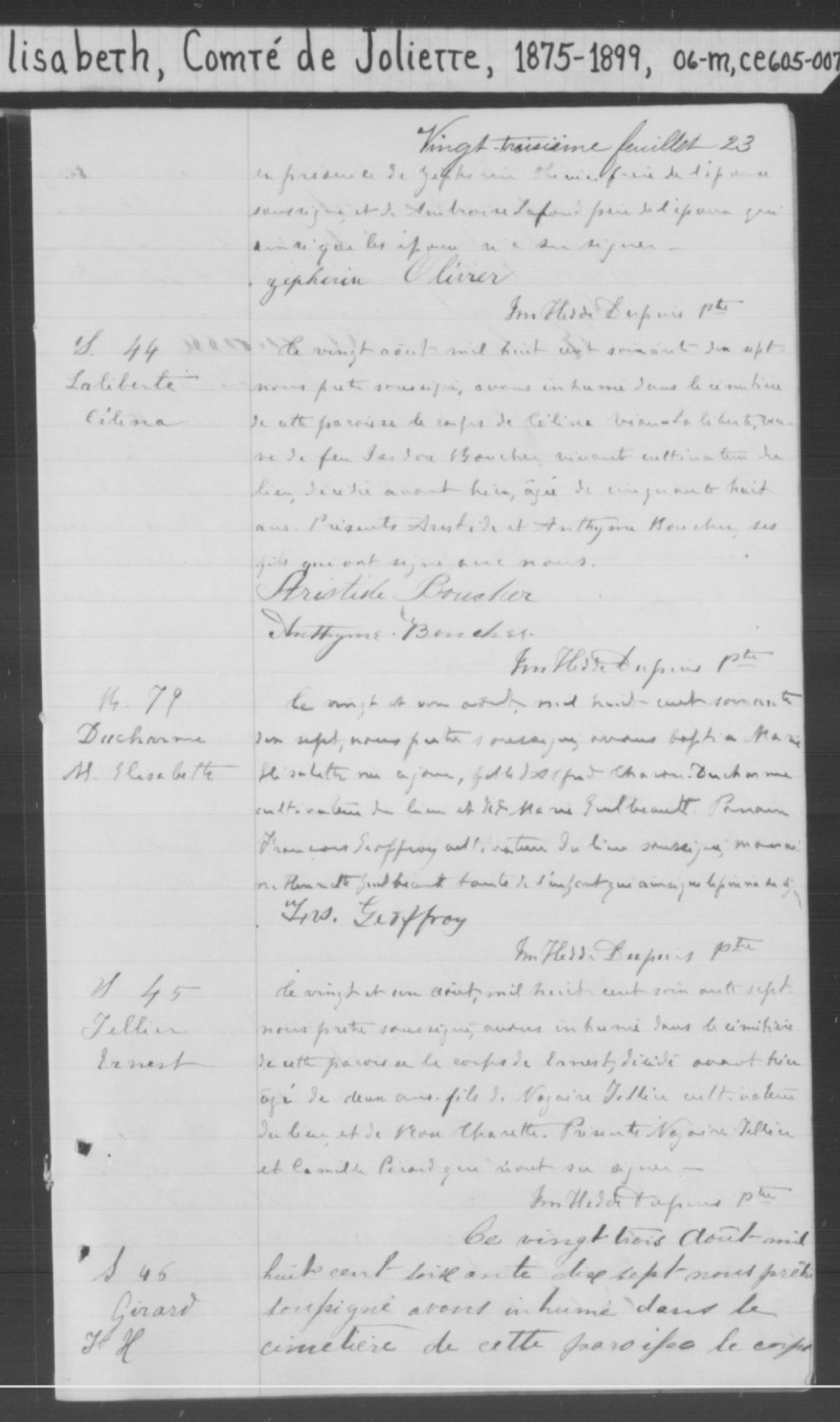 Sainte-Élisabeth, 1802-1921, Archives nationales à Montréal, Fonds Cour supérieure. District judiciaire de Joliette. État civil, (06M,CE605,S7).
