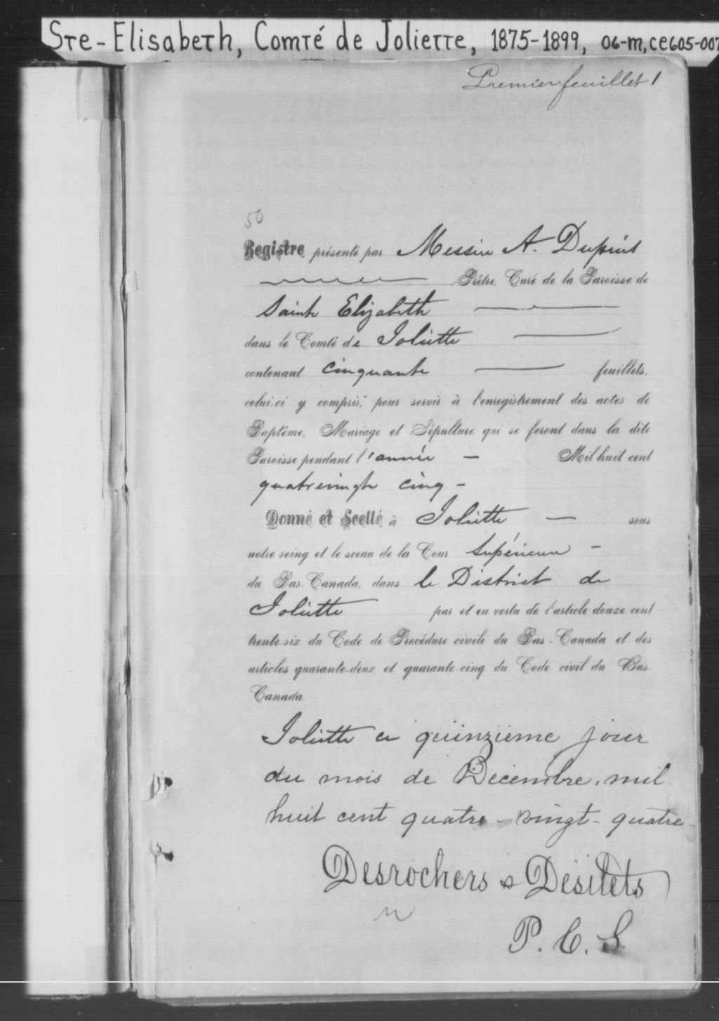 Sainte-Élisabeth, 1802-1921, Archives nationales à Montréal, Fonds Cour supérieure. District judiciaire de Joliette. État civil, (06M,CE605,S7).