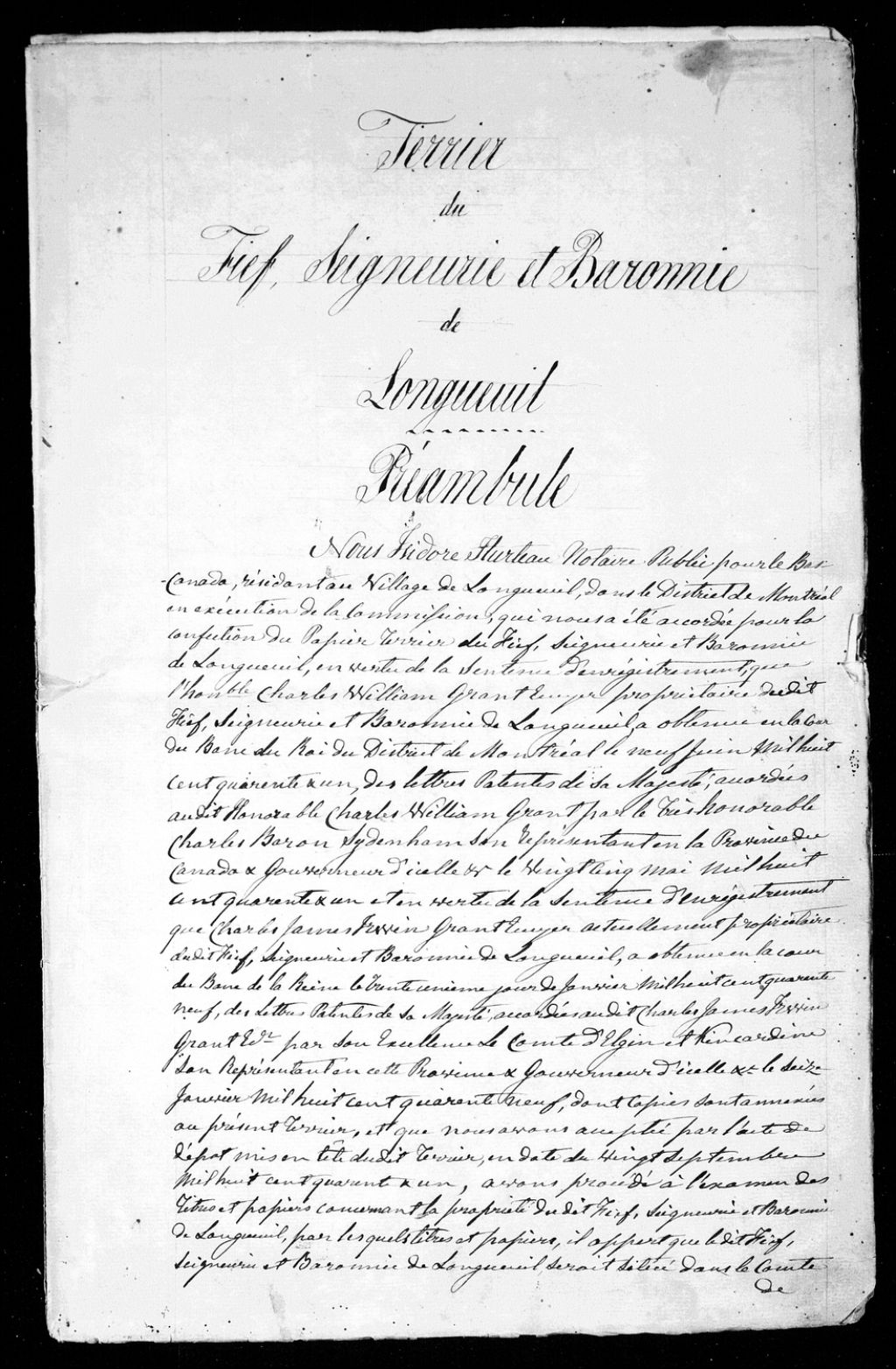 Terrier de la seigneurie de Longueuil et index, 1849, Archives nationales à Montréal, Fonds seigneuries de la région de Montréal, (06M,P167,S16,D4).