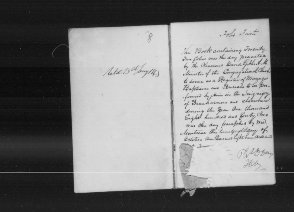 Chateauguay Congregational Church, 1842-1848, Archives nationales à Montréal, Fonds Cour supérieure. District judiciaire de Beauharnois. État civil, (06M,CE607,S55).
