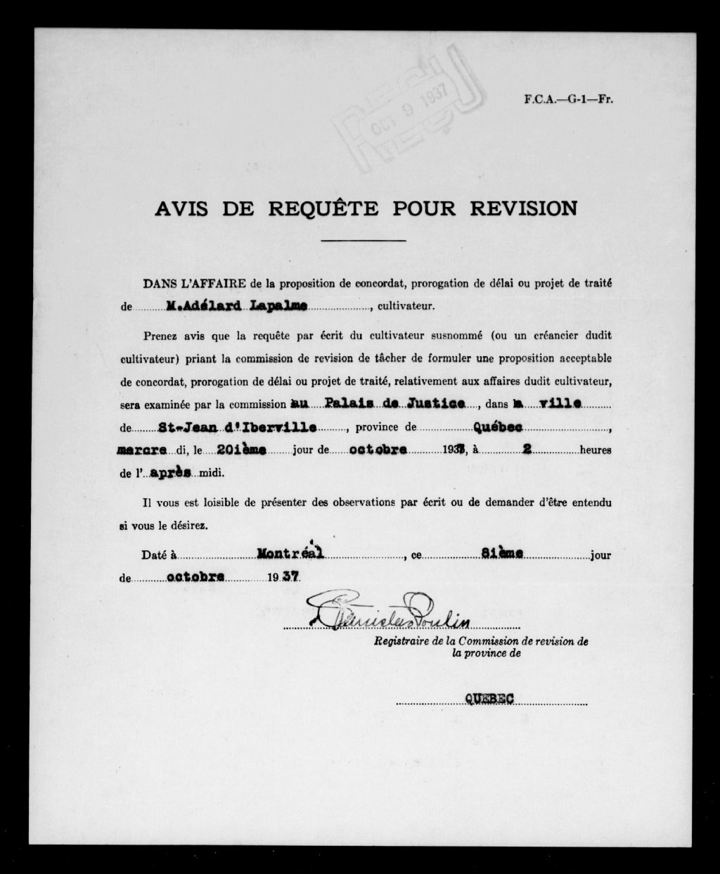 Avis de requête pour révision d'une proposition de concordat