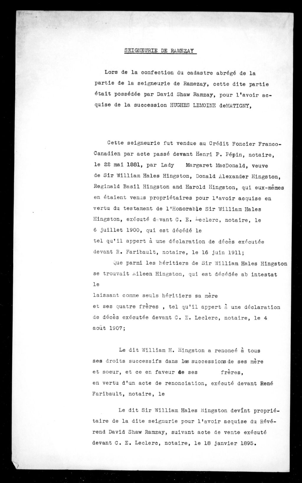 - Renseignement d'ordre géographique et monétaire sur la seigneurie