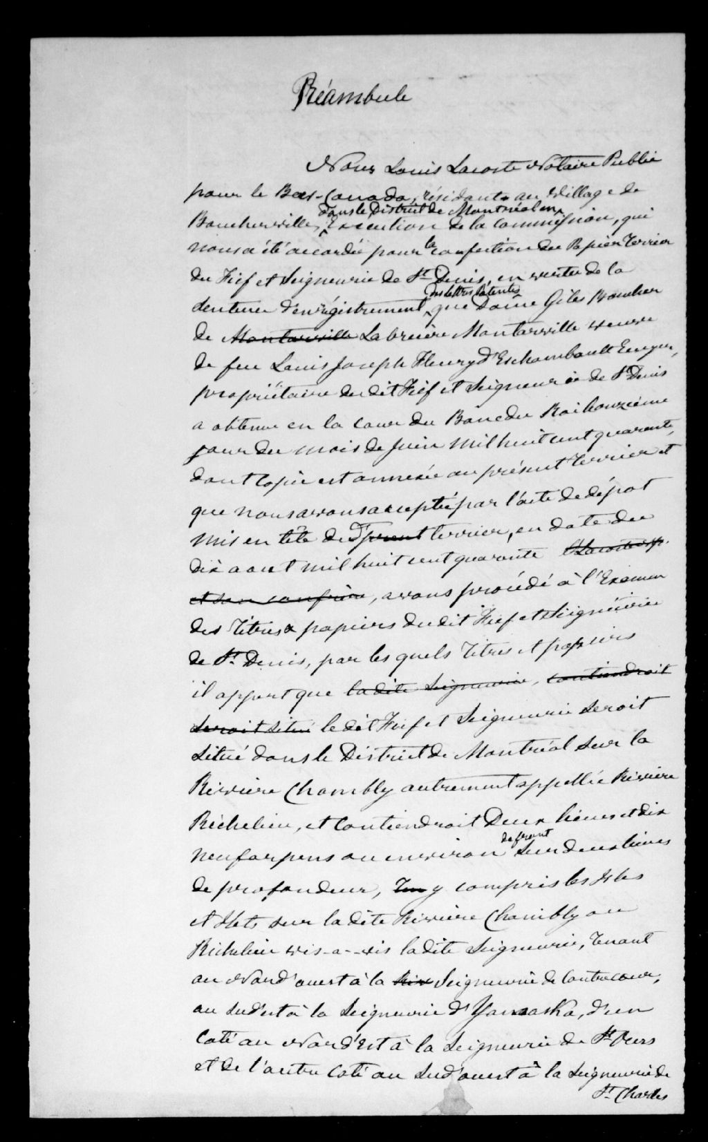 Terrier et index, 31 août 1849, Archives nationales à Montréal, Fonds seigneuries de la région de Montréal, (06M,P167,S27,D4).