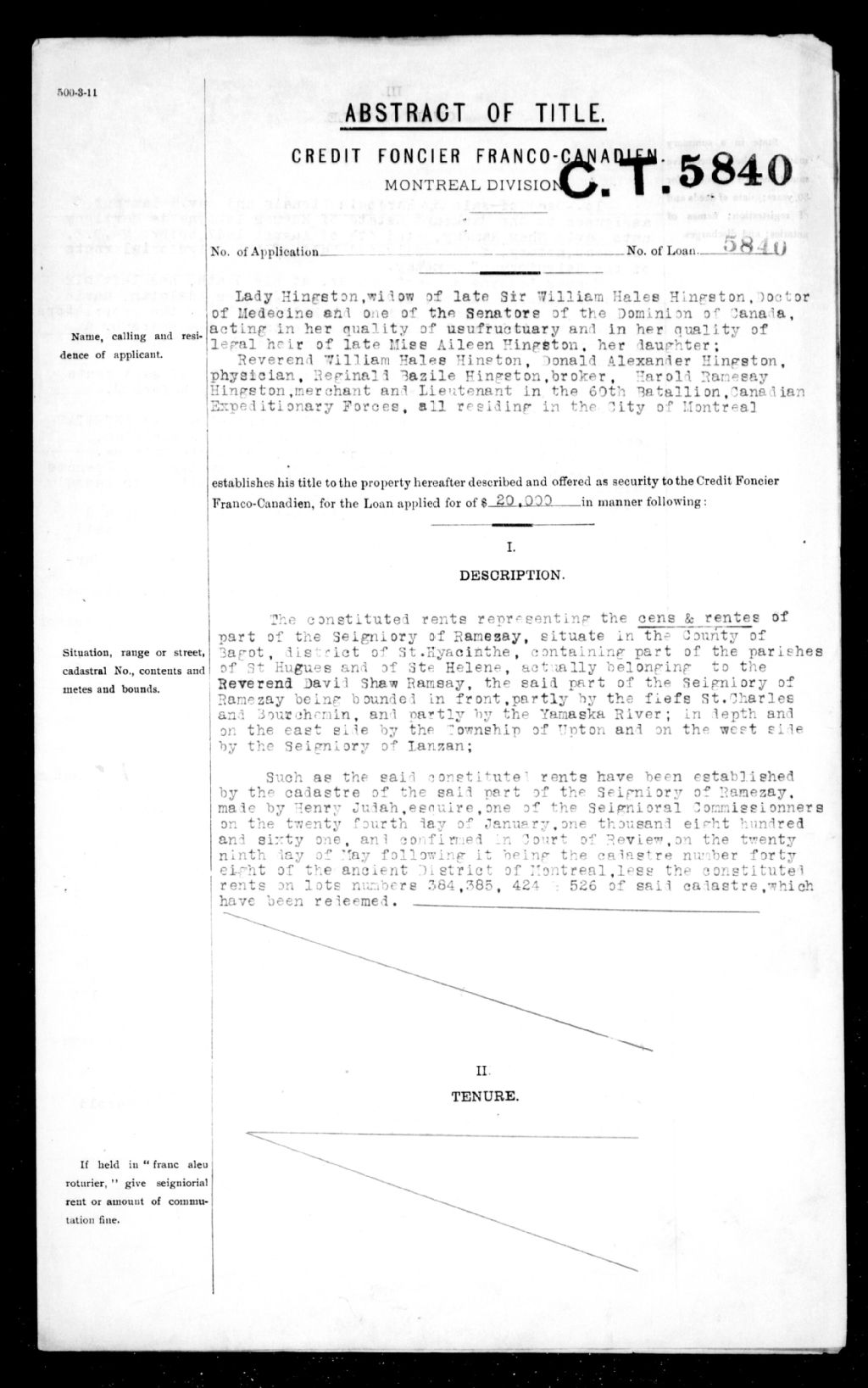 Demande et contrat de prêt accordé par le Crédit foncier franco-canadien