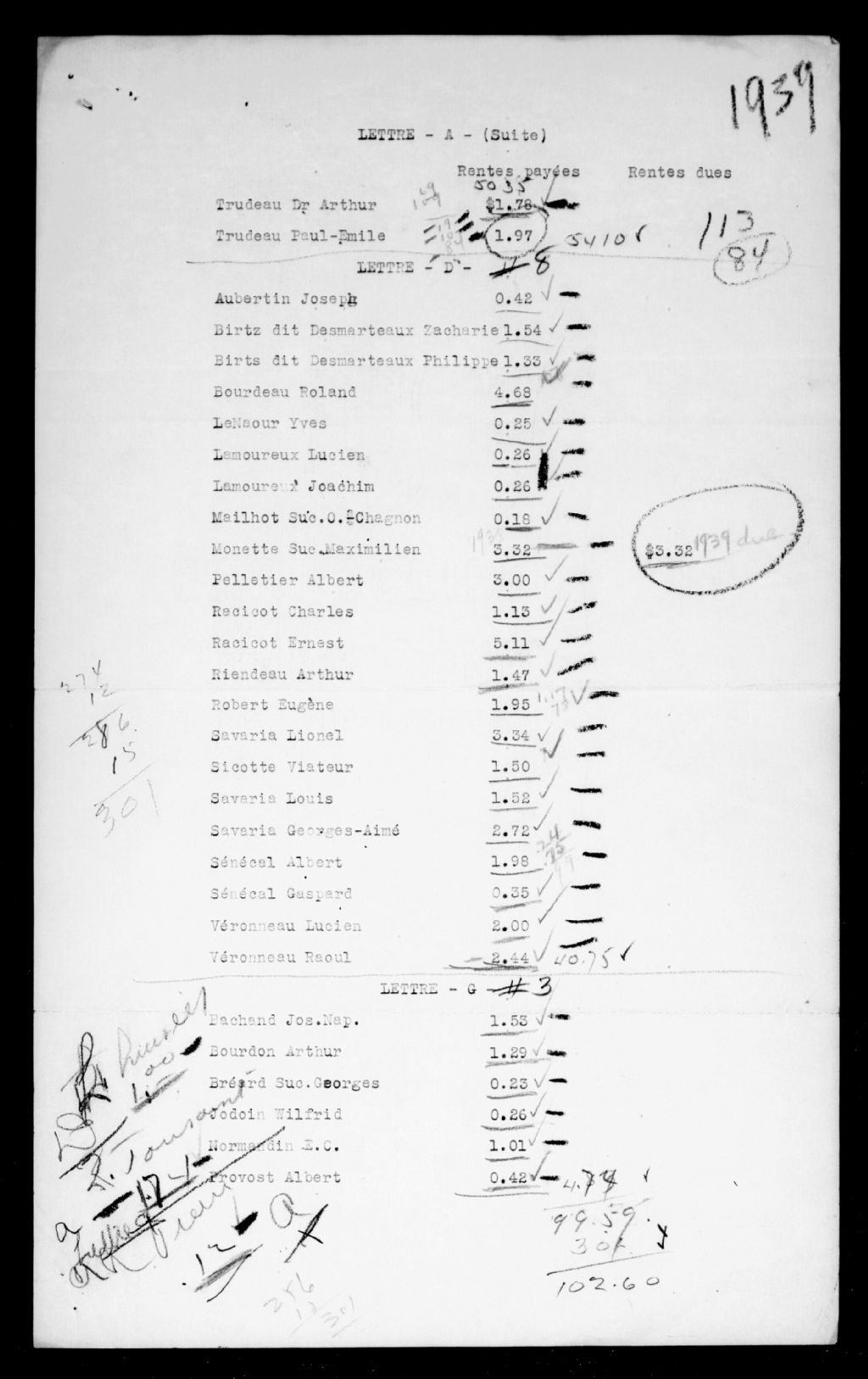 Liste des rentes seigneuriales du Crédit foncier franco-canadien de Boucherville, de Lanoraie-d'Autray et de Mondelet