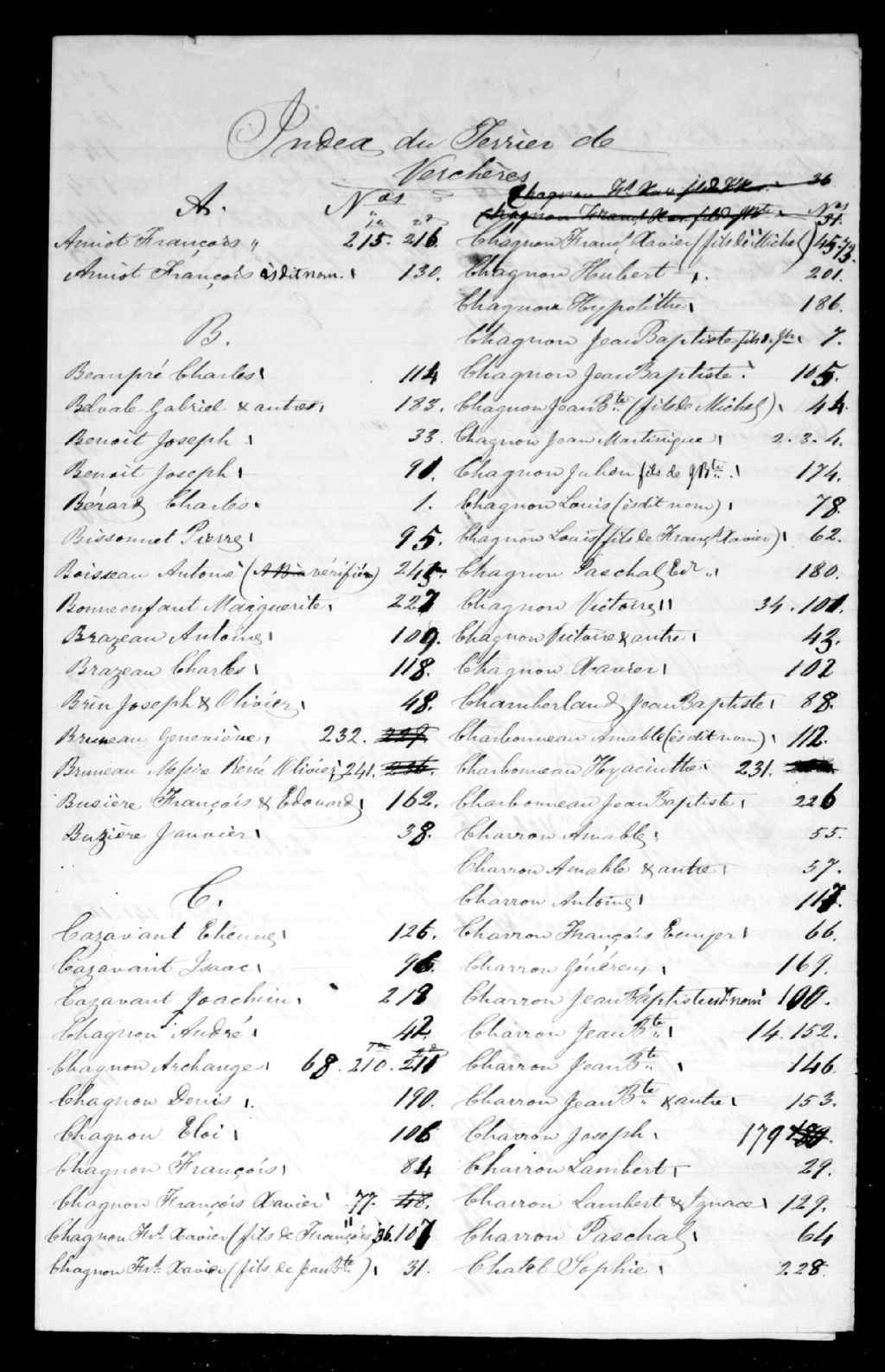Terrier de la seigneurie de Verchères et du fief Saint-Blain, index