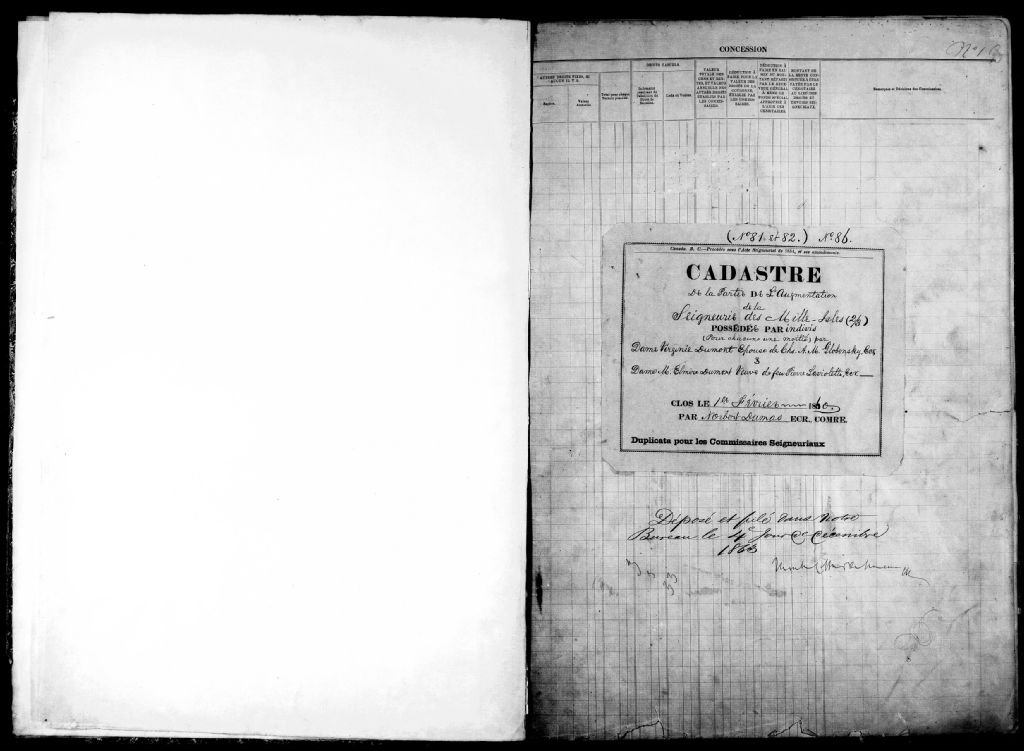 - Les propriétaires de la seigneurie sont madame Virginie Dumont (épouse de Chs. A.M. Globensky), madame Elmire Dumont (veuve de feu Pierre Laviolette), Joseph Lefebvre De Bellefeuille, Eustache M.A.L. De Bellefeuille, Louis Chs. L. De Bellefeuille et madame M.A.L. De Bellefeuille (épouse de Ant. C.L Harwood)