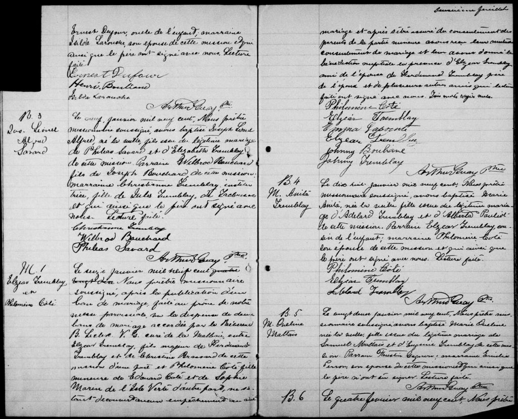 Les Bergeronnes, 1889-1922, Archives nationales à Sept-Îles, Fonds Cour supérieure. District judiciaire de Baie-Comeau. État civil, (09N,CE902,S8).