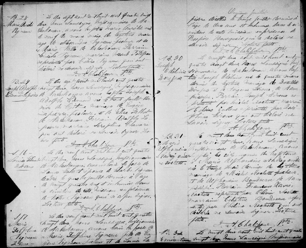 Notre-Dame-de-l'Immaculée-Conception de Natashquan, 1873-1922, Archives nationales à Sept-Îles, Fonds Cour supérieure. District judiciaire de Mingan. Etat civil, (09N,CE901,S6).
