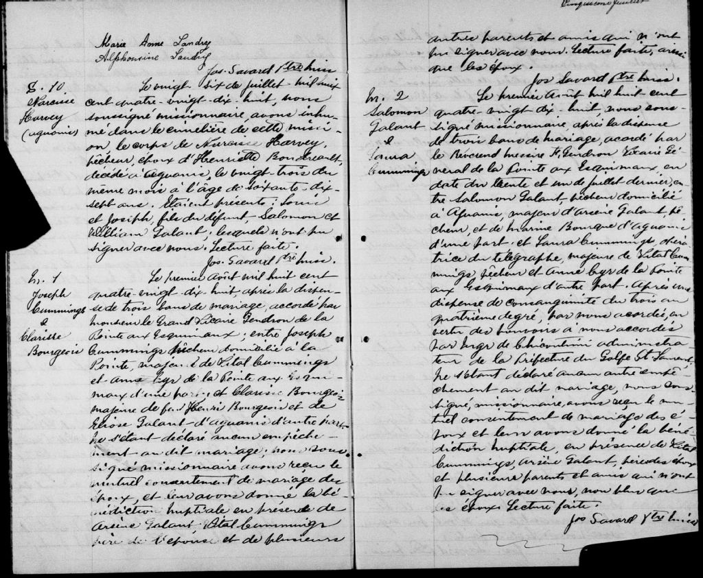 Notre-Dame-de-l'Immaculée-Conception de Natashquan, 1873-1922, Archives nationales à Sept-Îles, Fonds Cour supérieure. District judiciaire de Mingan. Etat civil, (09N,CE901,S6).