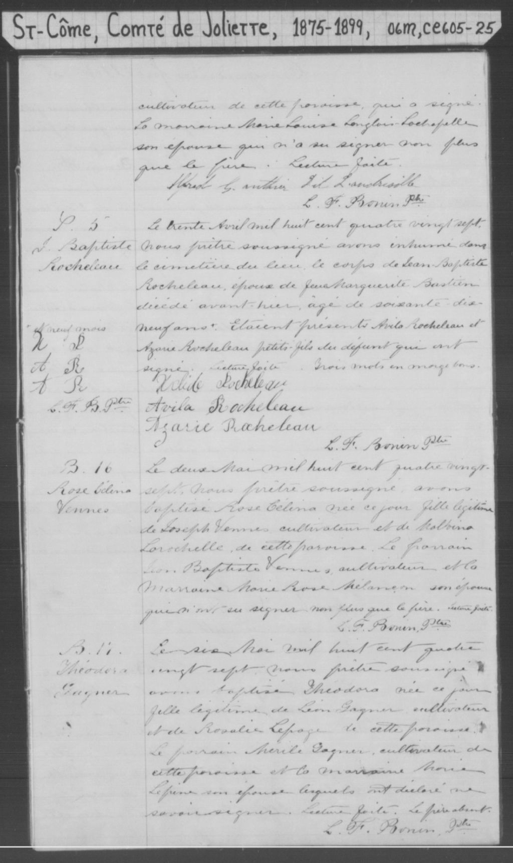 Saint-Côme, 1867-1921, Archives nationales à Montréal, Fonds Cour supérieure. District judiciaire de Joliette. État civil, (06M,CE605,S25).