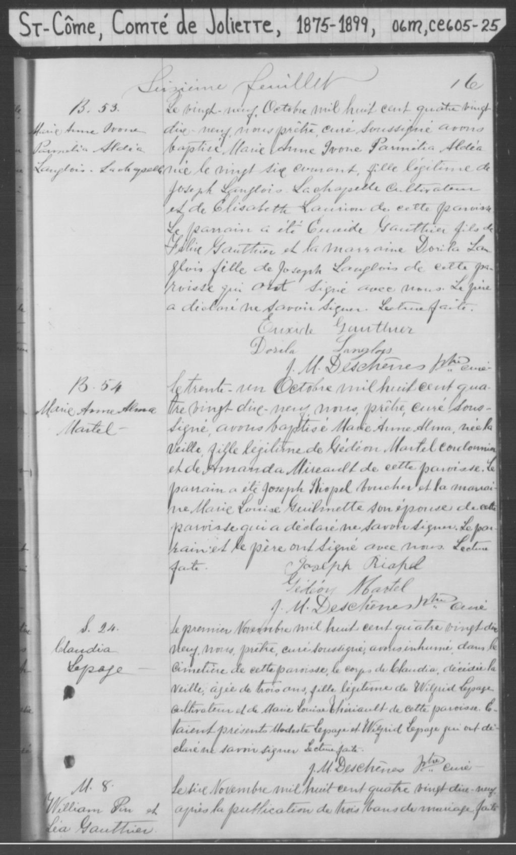 Saint-Côme, 1867-1921, Archives nationales à Montréal, Fonds Cour supérieure. District judiciaire de Joliette. État civil, (06M,CE605,S25).