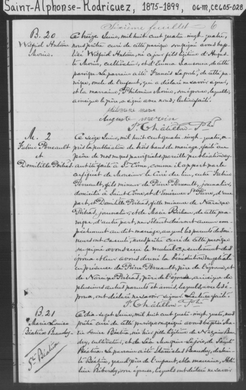 Saint-Alphonse-Rodriguez, 1844-1921, Archives nationales à Montréal, Fonds Cour supérieure. District judiciaire de Joliette. État civil, (06M,CE605,S28).
