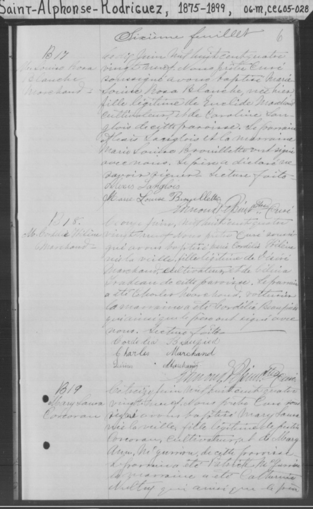 Saint-Alphonse-Rodriguez, 1844-1921, Archives nationales à Montréal, Fonds Cour supérieure. District judiciaire de Joliette. État civil, (06M,CE605,S28).