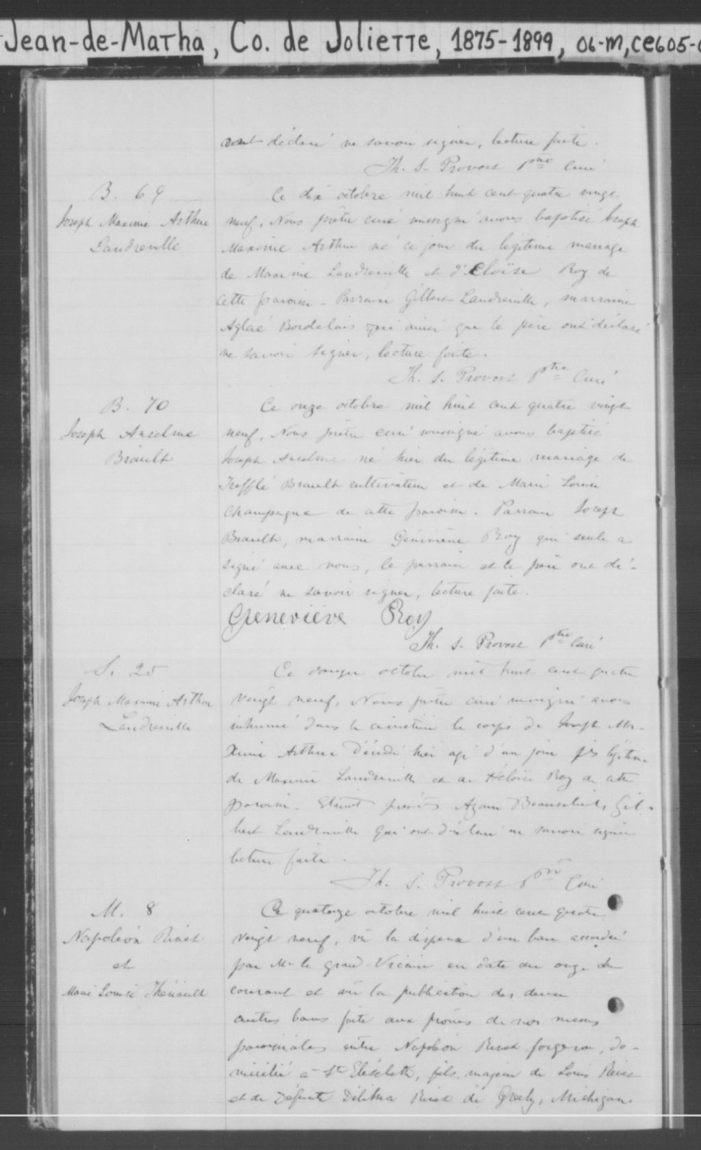 Saint-Jean-de-Matha, 1855-1921, Archives nationales à Montréal, Fonds Cour supérieure. District judiciaire de Joliette. État civil, (06M,CE605,S30).