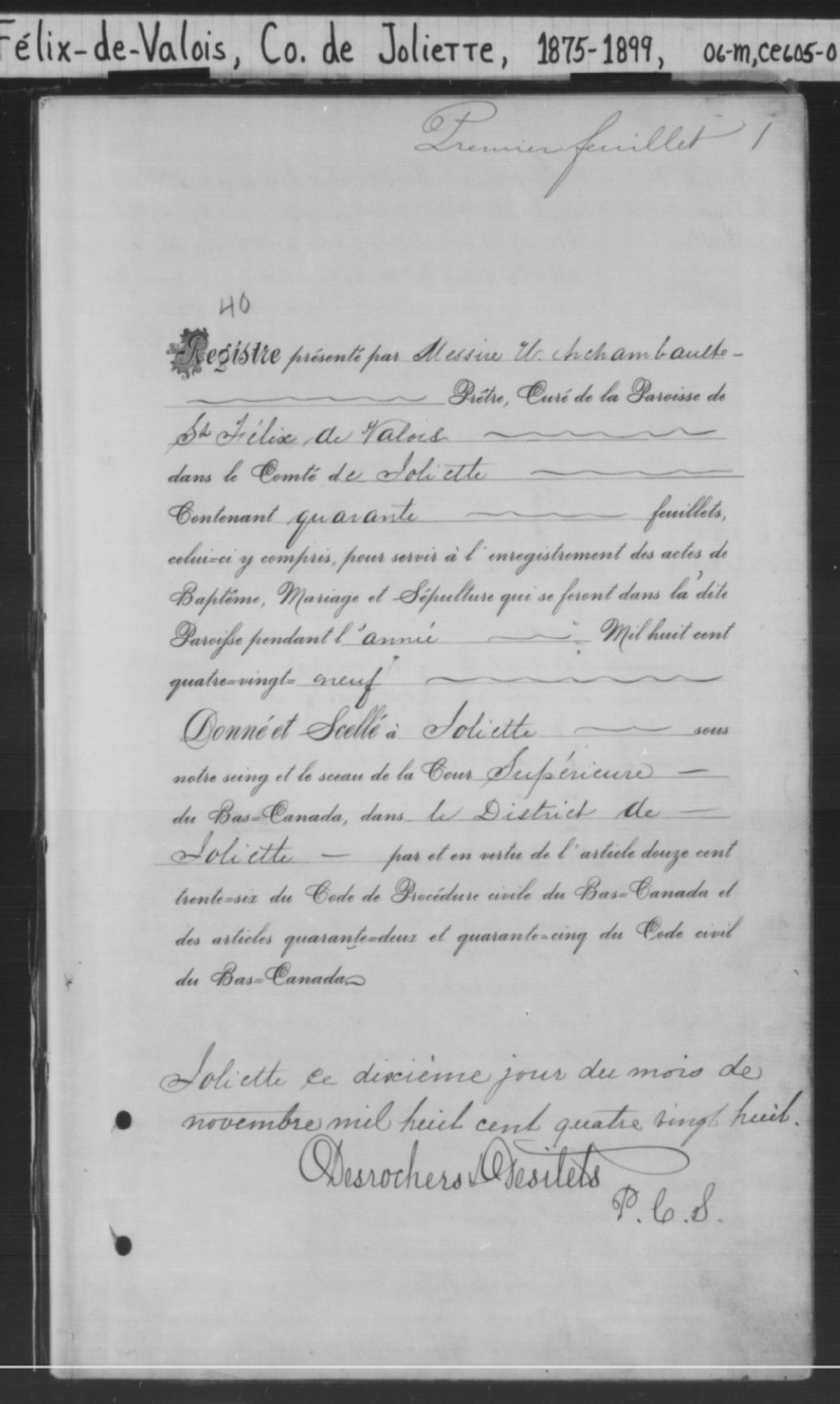 Saint-Félix-de-Valois, 1843-1921, Archives nationales à Montréal, Fonds Cour supérieure. District judiciaire de Joliette. État civil, (06M,CE605,S32).