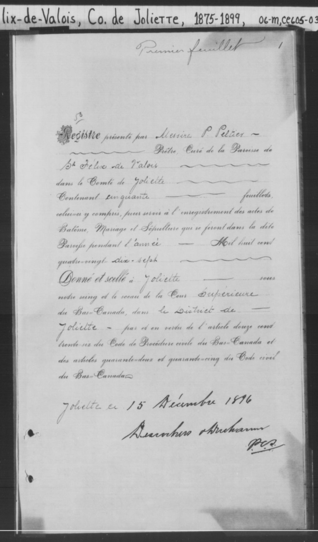 Saint-Félix-de-Valois, 1843-1921, Archives nationales à Montréal, Fonds Cour supérieure. District judiciaire de Joliette. État civil, (06M,CE605,S32).