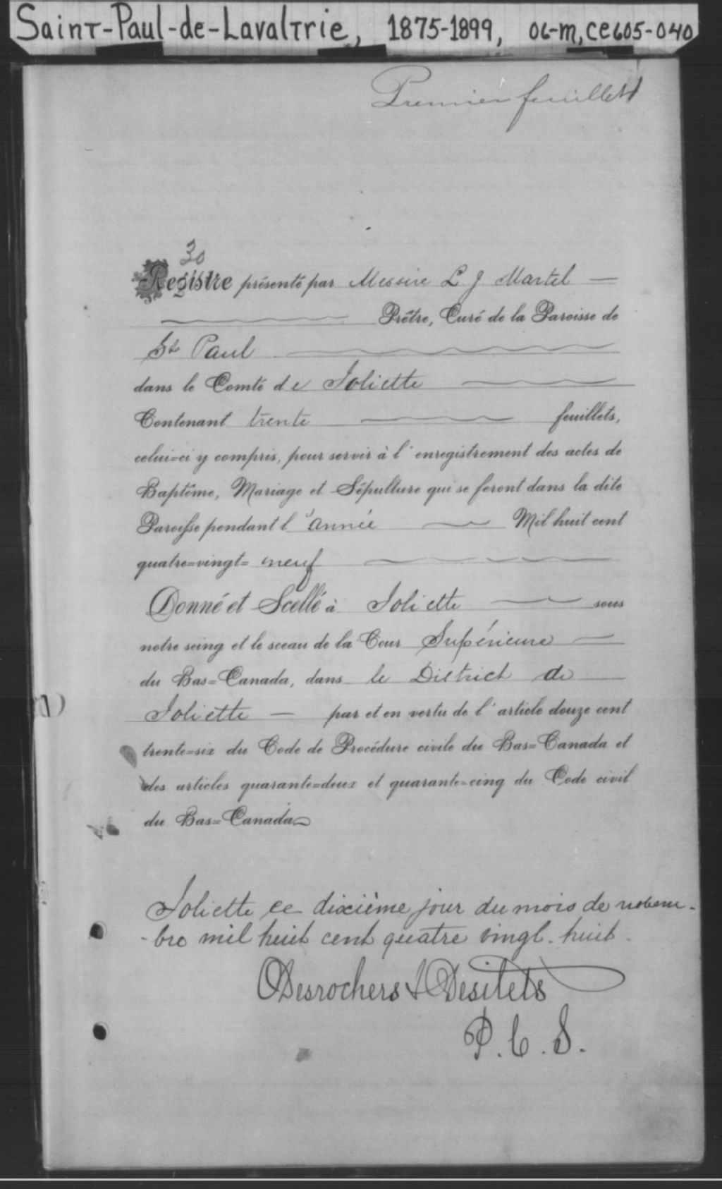 Saint-Paul-de-Lavaltrie, 1786-1921, Archives nationales à Montréal, Fonds Cour supérieure. District judiciaire de Joliette. État civil, (06M,CE605,S40).