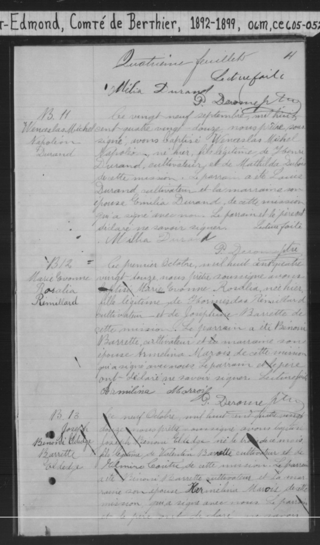 Saint-Edmond-de-Berthier, 1892-1921, Archives nationales à Montréal, Fonds Cour supérieure. District judiciaire de Joliette. État civil, (06M,CE605,S52).
